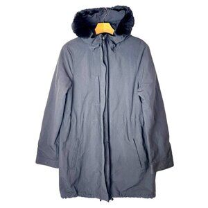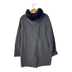 designer, luxury, anthro, anthropologie, parka, winter, spring, fall, hooded, rabbit fur, warm, long, casual, outdoor, outerwear, full-zip, zip-up, women, women's, casual, gothic, goth, classic, warm, comfortable, logo, full zip, mock neck, hooded, comfy, Size 12, Size 14, gorpcore, granola, hiking, walking, mountains, warm, cozy, comfy, skiing, ski, snow, sports,