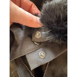 Comptoir Des Cotonniers Coat Women Large Black Rabbit Fur Hood Parka Outdoor