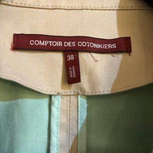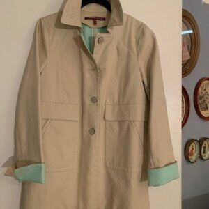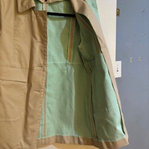 The jacket is a cream/beige color with beautiful turquoise lining.