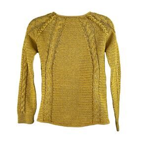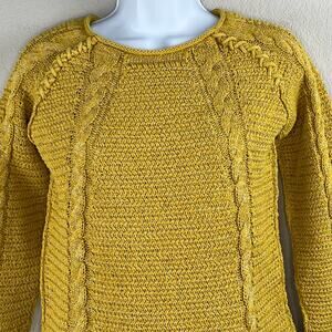 Comptoir Des Cotonniers Mustard Yellow Metallic Silver Cable Knit Sweater Size Small