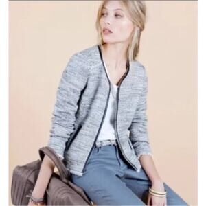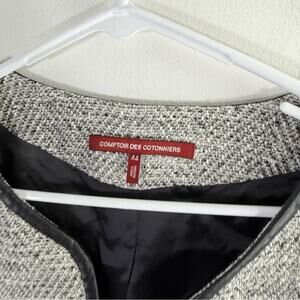 Comptoir Des Cotonniers Reine Black White Tweed Faux Leather Blazer Jacket 44 XL