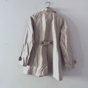 Classic, Chic tan trench jacket with hidden button closure, Size EU 40 which is equivalent to approximate a US size 8 with approximate measurements laying flat of 19" chest and 31" length. In gently used, excellent condition from a smoke-free, dog friendly home,.