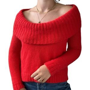 Comptoir Des Cotonniers Womens Bright Red Angora Cashmere Cowl Neck Sweater sz S