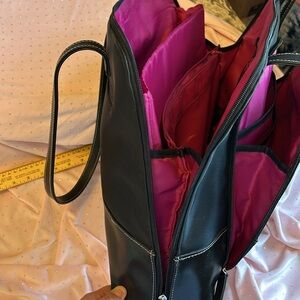 Tons of pockets, padding, pink inside, black outside