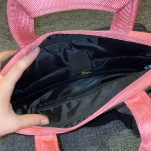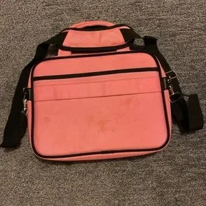 Not sure for what size but definitely a smaller laptop, 3 outside pockets, 3 inside pockets
