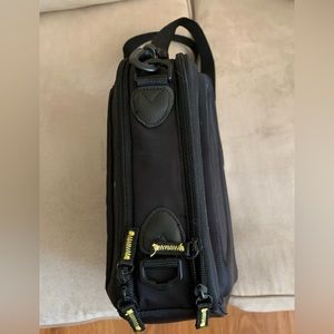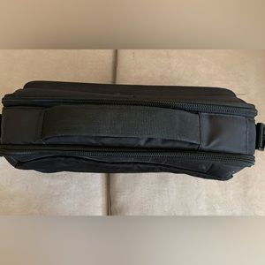 Case Logic brand black tablet/small computer case. Adjustable and removable straps and a carry handle. Numerous interior pockets, Velcro interior strap also. Small stain. See picture