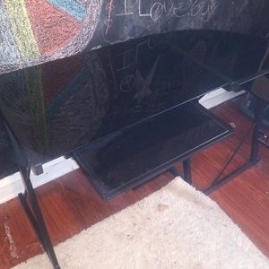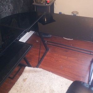 All black glass computer desk
