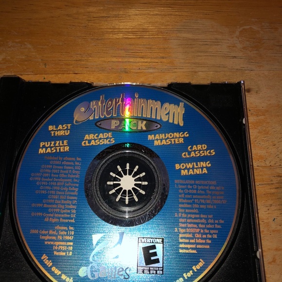 E games entertainment pack CD-ROM disc with case. Disc in good condition and contains card games, puzzles, bowling and other oldies. Smoke free home. Don’t forget to bundle multiple items for better offers. 🗞📌