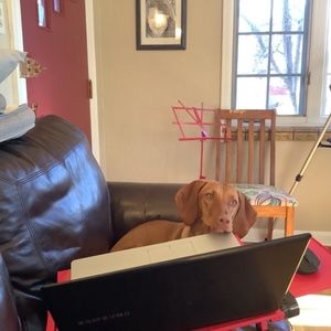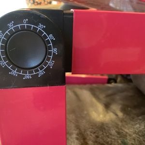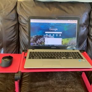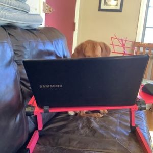 This beautiful coral computer stand can help with back posture. Good quality. Slightly used but no scratches.