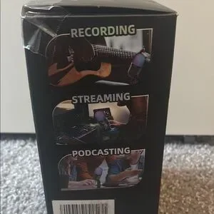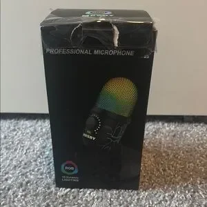 Microphone is inside and is functional and new but box is ripped up a little bit.All pieces that it came with are inside.Price is negotiable.