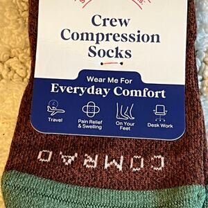 Comrad Compression Cotton Crew Socks Brown & Green Small W 5-7.5