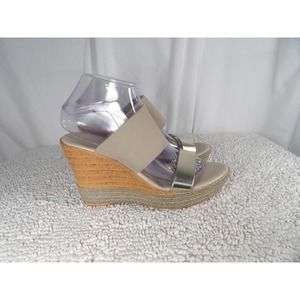 Comtesa Womens Brown Beige Designer Slip On Wedge Slide Sandals Size 8.5 M
