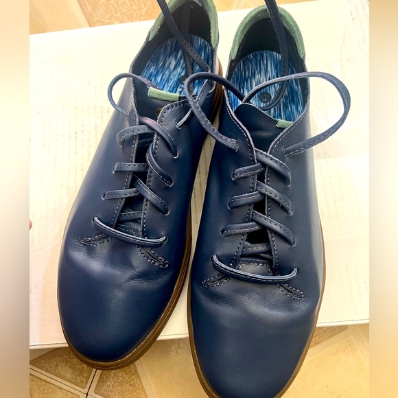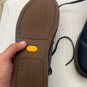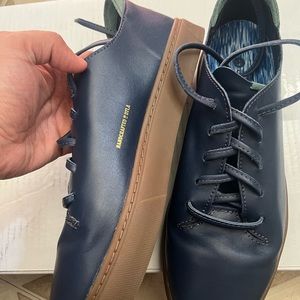 Comunity Made (spelling is correct) is a small company out of LA that makes custom shoes for customers. Dark navy faux leather shoes with gum Vibram soles. Almost brand new. Size 9 1/2 men. Original price are $400.00 +