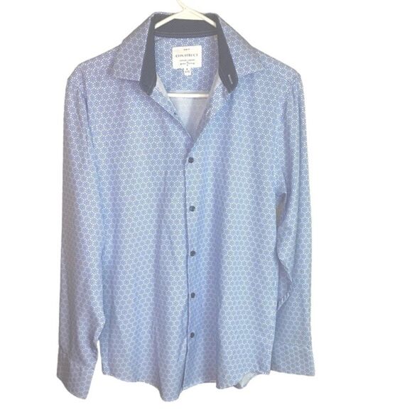 Con.Struct Mens Sz Med Blue White Slim Fit Performance 4-Way Stretch Sport Shirt
