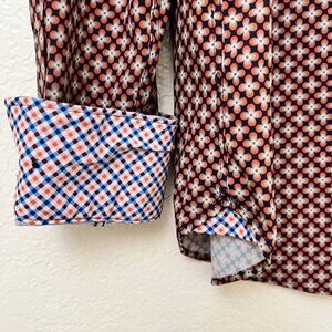 Con.Struct Slim Fit 4 Way Stretch Brown Print Button Down Flip Cuff Shirt XL