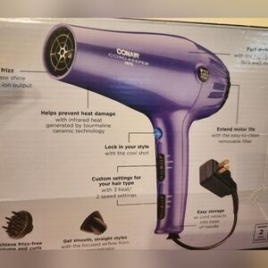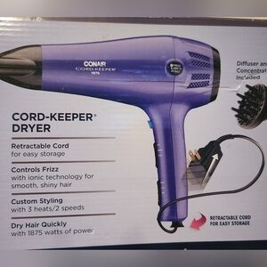 Conair Cord-Keeper 1875 Hair Dryer in Purple New In Box.