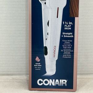 Conair Double Ceramic 1 1/2 in. Flat Iron Straight + Smooth. NWT. Please reference attached pictures for brand, small size, color, condition and setting instructions.