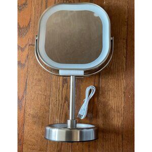 Box opened to validate condition of mirror. 1x/10x mirror. 360 degree rotation. USB rechargeable. Lasts up to 3.5 hours on a single charge.