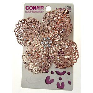 Conair Salon Clips Lot 3 Flower Design Rose Gold Silver Pewter Metal Gems Dressy