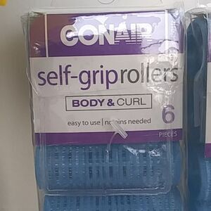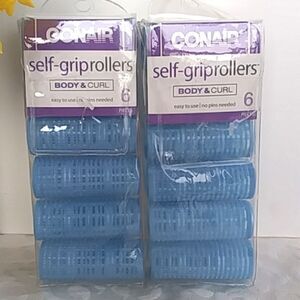 Conair blue self-grip hair rollers. New in packaging. Two packages, 6 rollers each - 12 total.