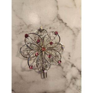 This intricately designed silver-tone hair clip from Conair Sophisticates offers a sophisticated touch to hairstyles. Adorned with pink and iridescent crystals, it adds elegance.