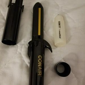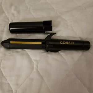 Awesome on the go hair straightener by Conair. Mini size. Runs on a refillable butane cylinder. Heats up fast and hot. Butane cylinder is full. Only used once. Great for in the car or anywhere you don't have access to electricity.
