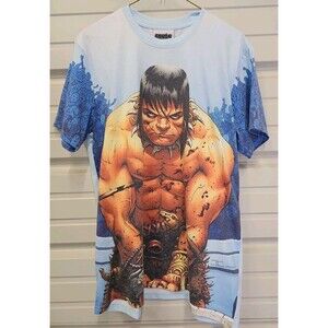 The Conan the Barbarian T-shirt in size M is a blue shirt featuring the iconic character Conan the Barbarian. This regular fit T-shirt is designed for men and is a must-have for fans of the legendary warrior. Show off your love for the barbarian with this stylish and comfortable piece of clothing.