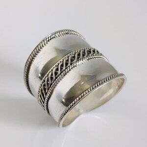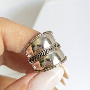 Concave light Bali Sterling Silver Ring - Wide Band Ring, Statement Thumb Band, Bohemian Jewelry.