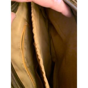 This purse is in excellent shape. Thixk supple leather. The concealed pocket runs the length of the purse and is lined in suede. 12x9x3. No wear on the strap at all. No spots or holes.