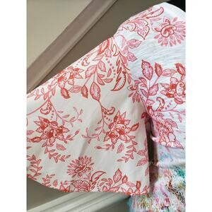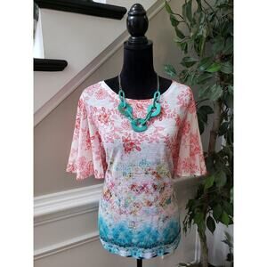Concepts Top Women's X-Large White Pink Aqua Floral Print Flutter Sleeves