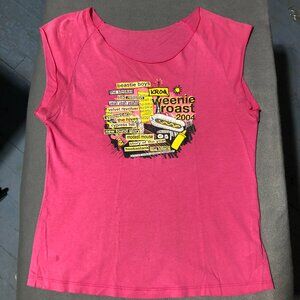 Vintage Concert T Shirt KROQ 106.7 Weenie Roast 2004. Size Medium Pink. Artist’s: Beastie Boys, Strokes, Bad Religion, The Killers, Yeah Yeah Yeahs, Velvet revolver, Yellowcard, The hives, Cypress Hill, New Found Glory, Modest Mouse, Story of the year, and hoobastank. There is a lot of wear spots and a two small holes. Please see pictures for more detail.