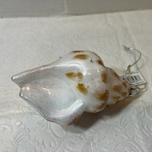 Conch Shell Coastal Beach Christmas Glass Glitter Ornament Brown White 4"x2.5"