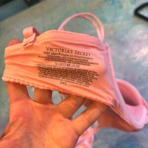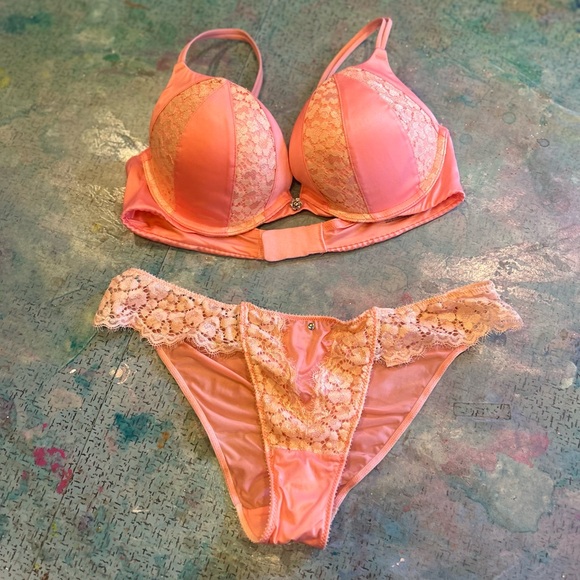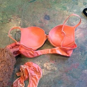 This mosttttt beautiful shade of pink - conch shell/flamingo/light pink VS bra and panty set