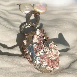 Once upon a time, a majestic conch shell found its way to a skilled artisan. With delicate hands, it was transformed, adorned with shimmering silver metalwork and embraced by lustrous pearls. This necklace tells a tale of the sea and the art of upcycling, inviting its wearer to carry a piece of oceanic wonder with them.