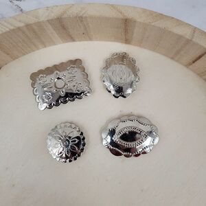 Concho Button Covers Silver Toned Western Floral Lot of 4