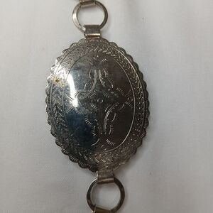 This vintage Concho Metal Discs Link Belt features an etched Southwestern design, perfect for adding a touch of retro glamour to any outfit. The silver metal material gives it a timeless and elegant look, making it suitable for adult unisex wear. Measuring 36 inches in length, this belt is ideal for those looking to make a bold fashion statement with a touch of 80s flair.