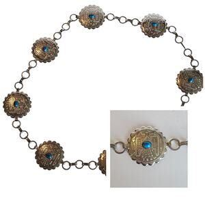Concho Waist Belt Silver Embossed Medallion Cowgirl Western Statement Women's Medium