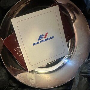 NIB collected and kept safe and now offered for the first time! This exceptionally rare collectors vintage silver dish was created to mark the 10th anniversary of the famed Air France Concorde's Paris to New York flight in 1986. This item, marked "Metal Argente ATP Pichard," is a collectible piece, measuring approximately 4.25 inches across and 1 inch tall. New In Box a wonderful gift for any aeronautics aficionado