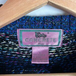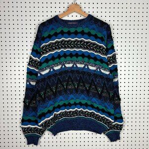 Concrete 3D Coogi STYLE Knit Sweater Large Blue Multicolor Grandpa 90s Hip Hop
