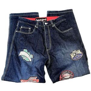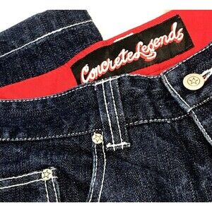 Concrete Legends Vtg Jeans Baggy Blue 33 34 Team Logo Basketball Hip Hop Street
