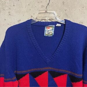 Concrete Men VTG Geometric Sweater Pullover Sz XL Multicolor Crew Neck Wool