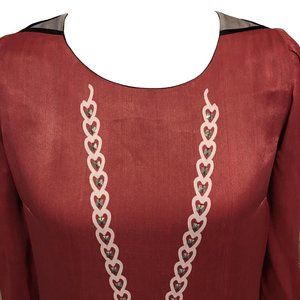 • Rusty-Red color with cream & gray designs