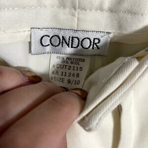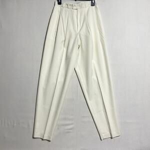 Step into timeless style with these Vintage Condor Trousers! These classic pants feature a flattering high-waist fit and a chic double-pleated front, which adds beautiful drape and volume before tapering down to a refined ankle. The off-white/cream color is versatile for any season, and the durable wool blend offers a comfortable, structured feel perfect for a work wardrobe or a sophisticated casual look.