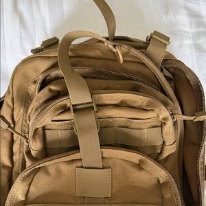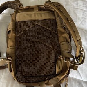 Explore the outdoors with this rugged tan assault backpack. Designed for durability and versatility, it's perfect for any adventure.