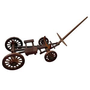 Wood burnt "Dodge City" on back of wagon. Wagon lifts off of frame.