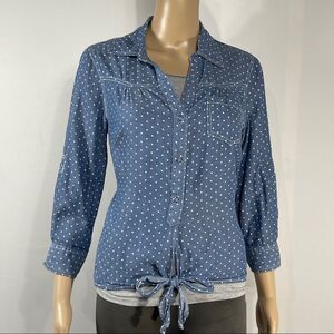 Confess Blue and White Polka Dot Button Up Shirt