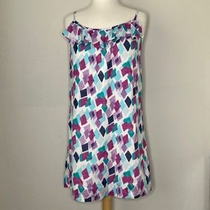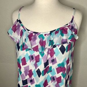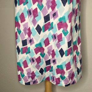 Open fit. 70% cotton, 30% linen. Fully lined. Can wear open but I also belted it for a more fitted look. Belt not included.