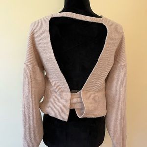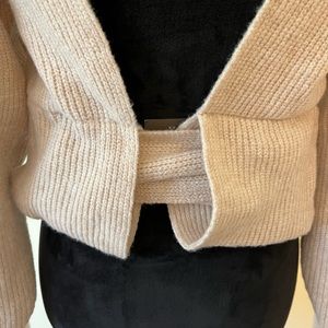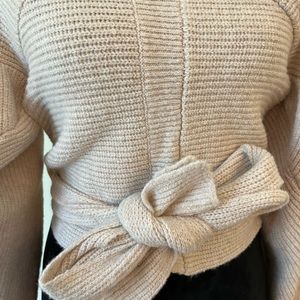 So I have no idea if this is even how you wear this sweater. I bought this at a boutique where I live, brand new with tags, never worn (because I can’t figure out how to LOL), so if anyone wants to give it a shot, it’s yours! Very soft fabric, tie comes completely off, perfect for upcoming fall!