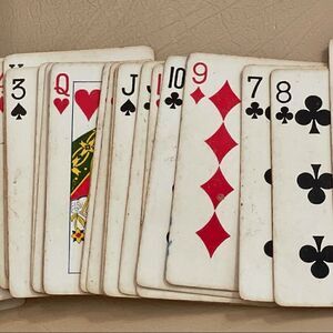 Playing cards also show signs of wear,use&age.