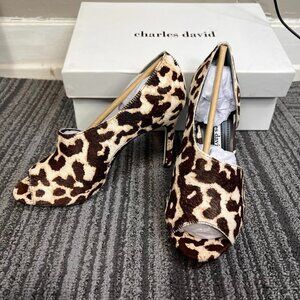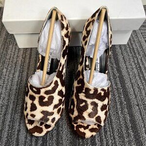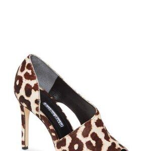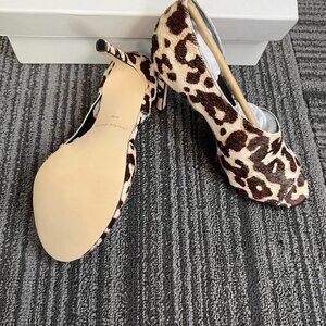 Congress Cutout Peep Toe Pump In White Snow Leopard Calf Hair size 6